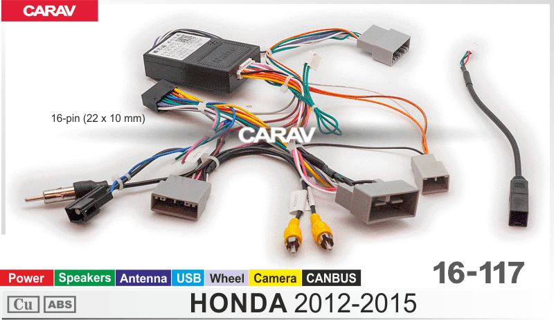 —CARAV 16-117 комплект подключения базовых магнитол для а/м HONDA 2012-2015 / Power+Speakers + Antenna + Wheel + Camera + USB + CANBUS