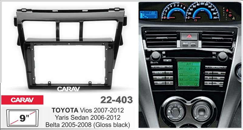 —CARAV 22-403 (9 дюйм. монтажная рамка для а/м TOYOTA Vios 2007+, Belta 2005-08, Yaris Sedan 2006-12 (глянцевый черный)